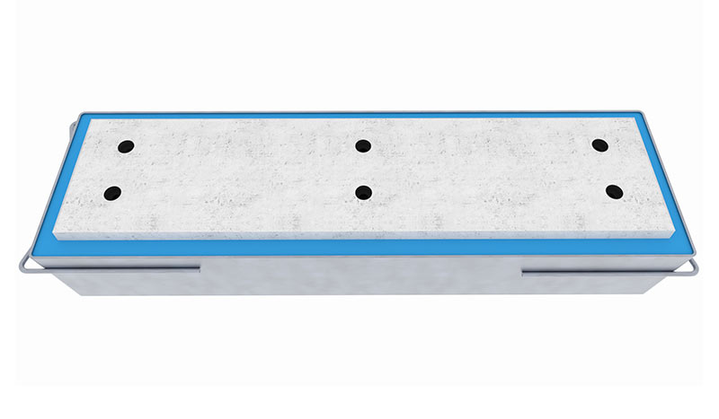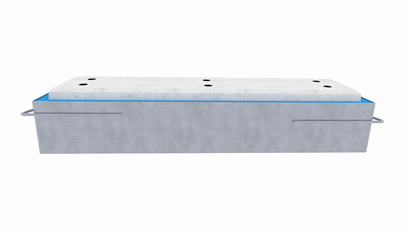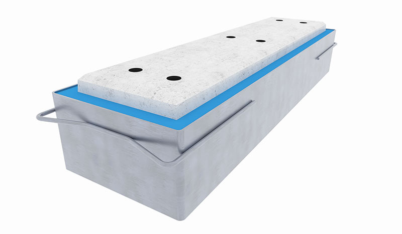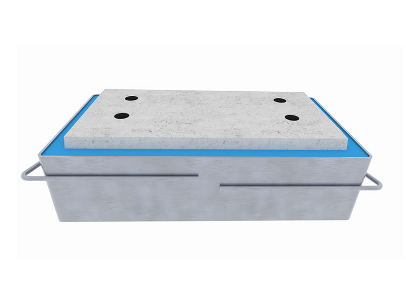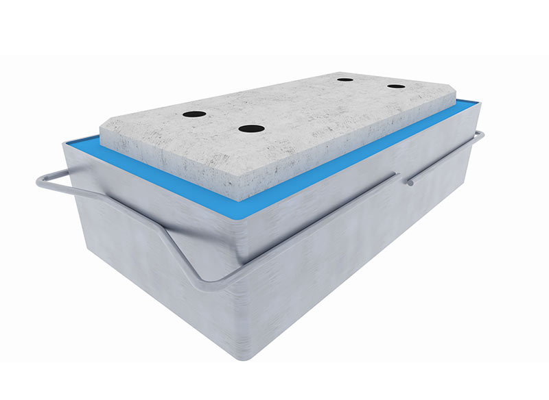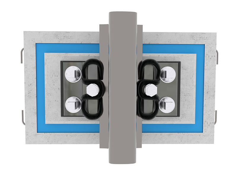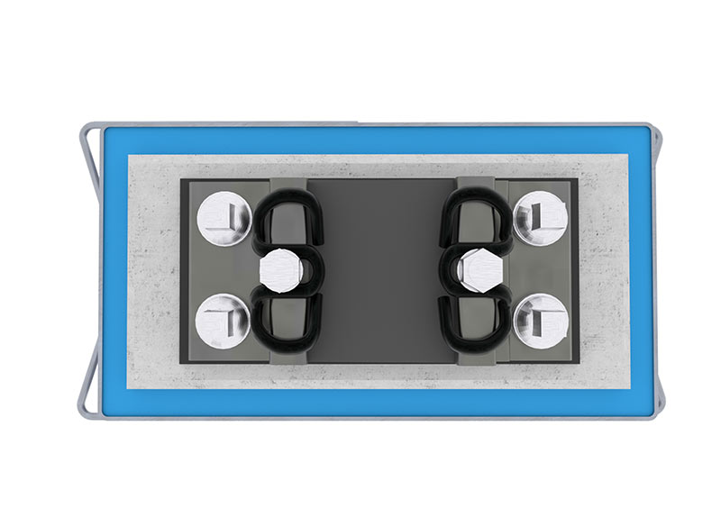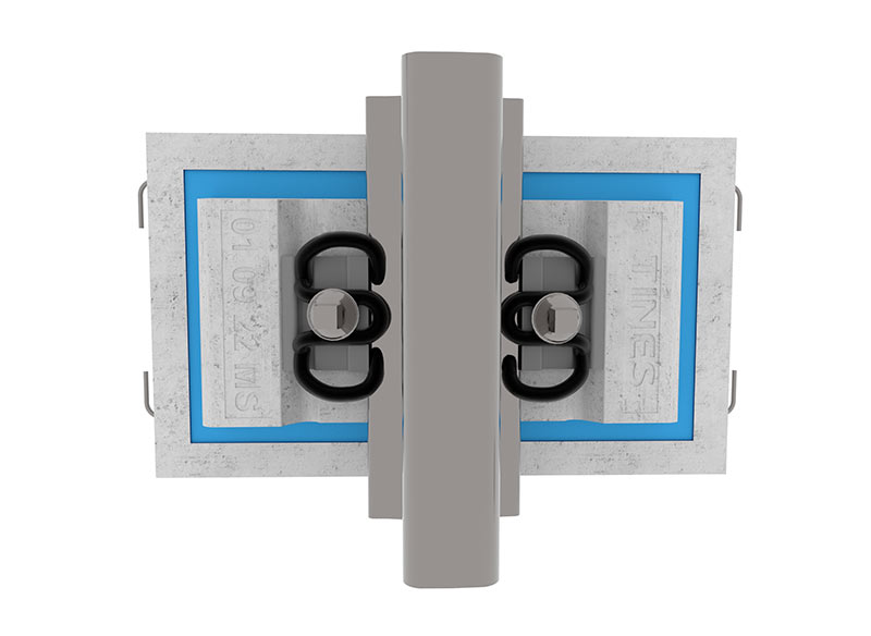 Rail block supports in encasement – the TINES® EBS system is intended for use in a ballastless track construction, especially in sections where it’s crucial to reduce vibrations caused by the movement of rail vehicles, e.g., on engineering structures: steel or concrete, and in tunnels. Block supports are installed in prefabricated concrete or steel sockets using the elastic filling mass TINES® Polyrail.