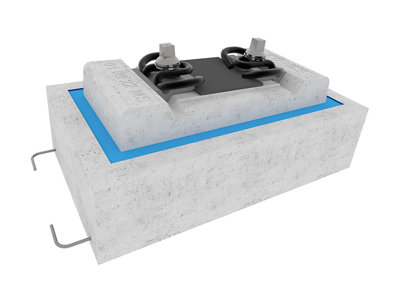• block support TINES® EBS – HR (Heavy Rail) used for maximum axle loads up to 245 kN and train speeds V ≤ 250 km/h