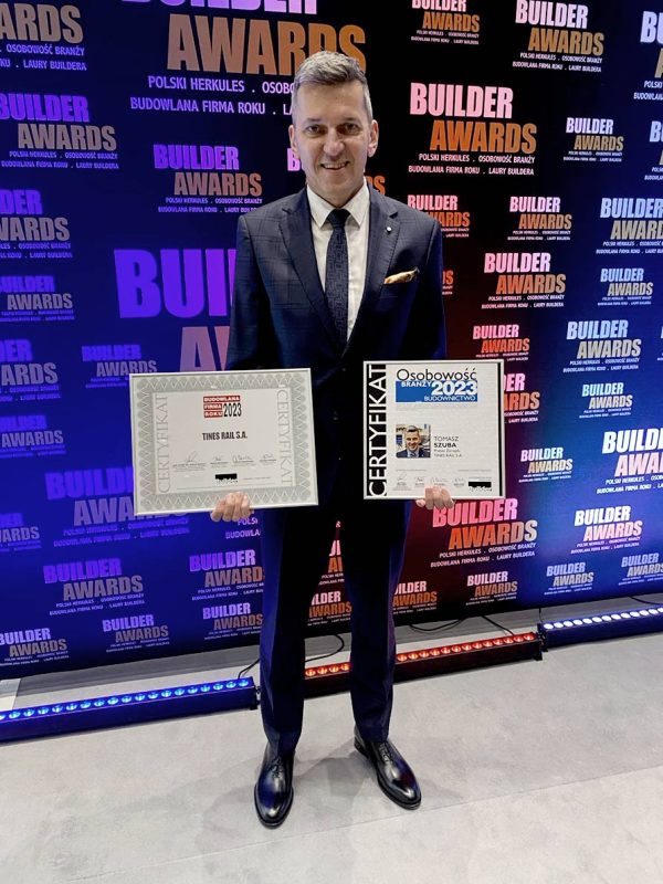 TINES Rail SA Wins Double Awards in the 2023 TOP Builder Competition.TINES Rail SA secured two major awards in this year’s TOP Builder competition.The “Industry Personality of 2023” title was awarded to Tomasz Szuba, President of the Management Board of TINES Rail SA, by the Builder Awards Jury. Under his leadership, TINES Rail SA also received the “Construction Company of the Year 2023” distinction in the category “Manufacturer of Construction Materials – Solutions for Railway Infrastructure.” The awards are granted by the Builder Awards Jury, composed of representatives from the scientific and media communities.