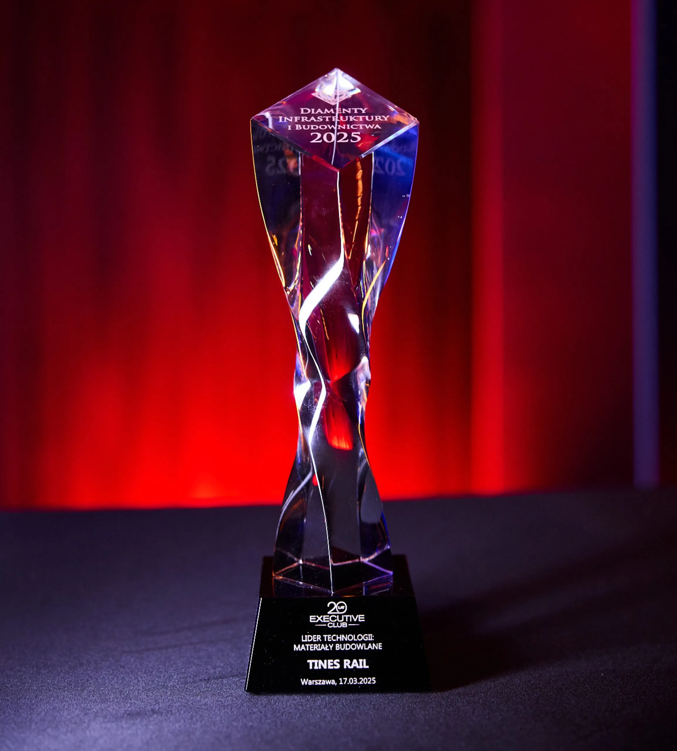 Nous sommes heureux d’annoncer que TINES Rail a remporté le prix « Leader de la technologie – Matériaux de construction » lors de la cérémonie de la XVIᵉ édition de la conférence « Infrastruktura Polska i Budownictwo ».