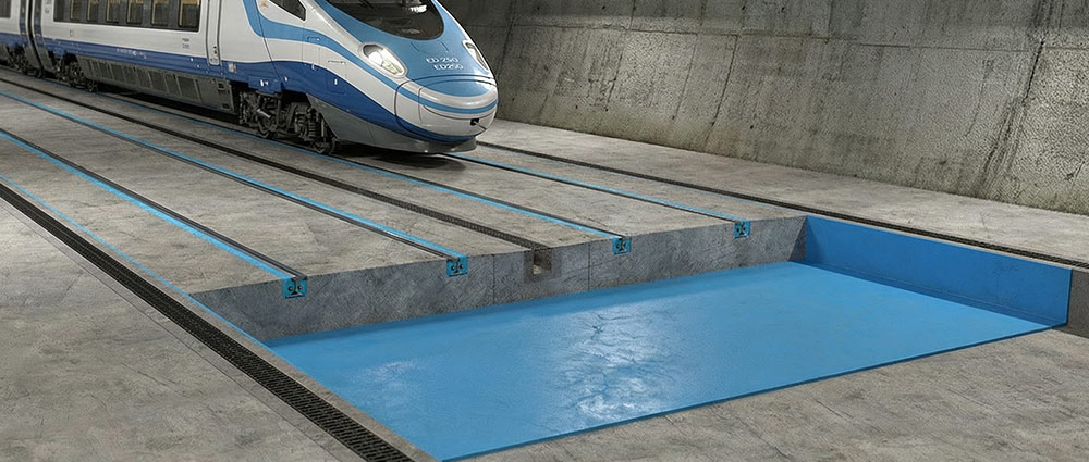 Prefabrykowana taca szczelna TINES® SRT jest prefabrykowanym elementem konstrukcyjnym bezpodsypkowej nawierzchni kolejowej wykonanym z betonu żelbetowego, przeznaczonym do zabudowy w miejscach wymagających zabezpieczenia podłoża toru przed przenikaniem zanieczyszczeń.