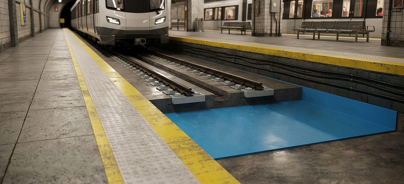 Ze względu na sposób zastosowania, dla konstrukcji nawierzchni szynowej metra zalecane jest stosowanie mat wibroizolacyjnych TINES® typu STM (Slab Track Mats) przeznaczonych do nawierzchni bezpodsypkowych. Maty te układa się bezpośrednio pod betonową płytą torową. Ich głównym zadaniem jest ograniczenie przenoszenia drgań i hałasu z przejeżdżających pojazdów szynowych na podłoże oraz otoczenie. Dodatkowo poprawiają one elastyczność całej konstrukcji toru, chronią elementy infrastruktury przed nadmiernymi obciążeniami oraz zwiększają trwałość nawierzchni.
